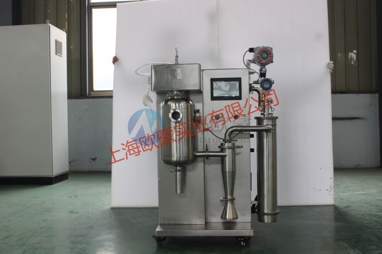 小型壓力噴霧干燥機(jī)主要由進(jìn)風(fēng)系統(tǒng)、壓縮空氣系統(tǒng)、噴霧系統(tǒng)、干燥塔體系、出風(fēng)系統(tǒng)等組成。進(jìn)入干燥塔的物料首先通過噴霧系統(tǒng)進(jìn)行均勻噴霧,形成小顆粒,然后在干燥塔中與高溫的出風(fēng)進(jìn)行熱交換,使得水分蒸發(fā),物料逐漸變成干燥顆粒,**通過出風(fēng)系統(tǒng)排出干燥塔。